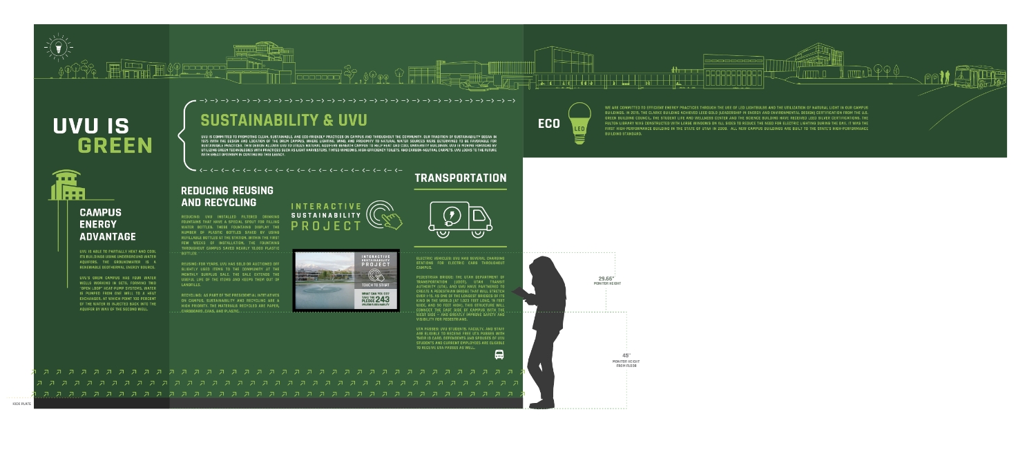 Show Real Impact – Display real-time energy usage and highlight UVU’s green building features, recycling programs, and water conservation systems.